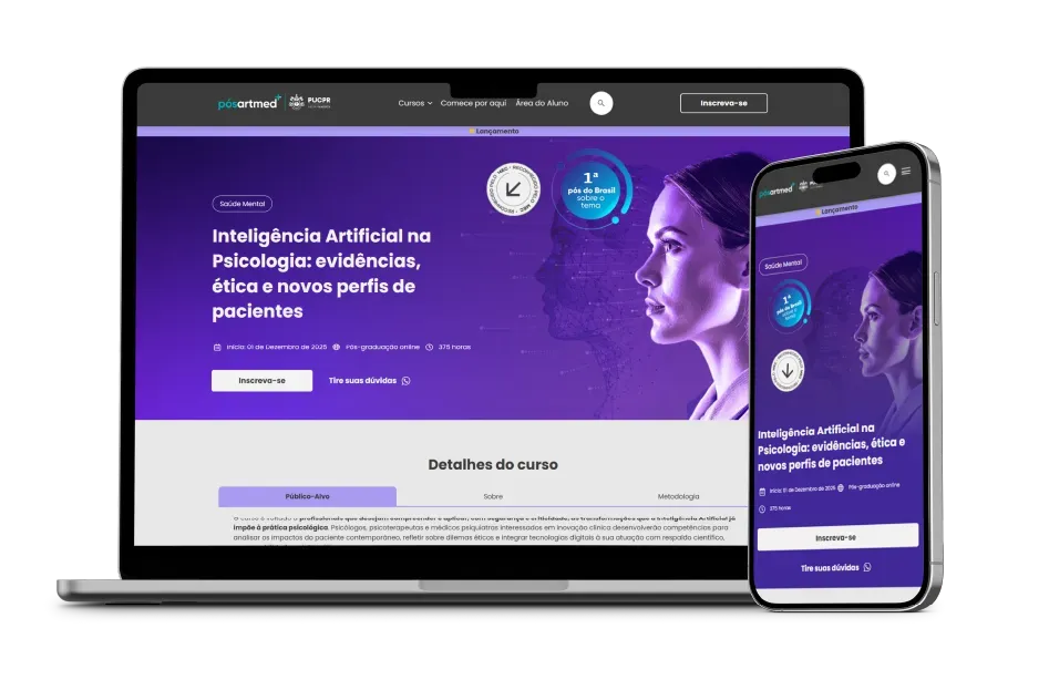 A inteligência artificial já está transformando o comportamento dos pacientes, as dinâmicas clínicas e os desafios éticos da prática. Agora, você pode levar esse entendimento para o próximo nível com a Pós-graduação em Inteligência Artificial na Psicologia da Pós Artmed.